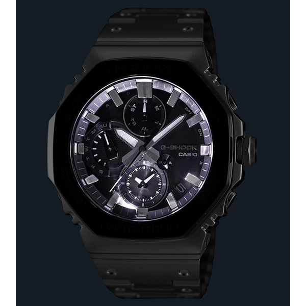 G-SHOCK初代モデル“DW-5000C”の八角形フォルムを受け継ぐGMW-B5000・GM-B2100・GMC-B2100から、その象徴的な八角形トップベゼルにブラックを採用したモデルです。