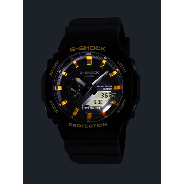 ●ダブルLEDライト: 文字板用LEDライト(スーパーイルミネーター、残照機能、残照時間切替( 1.5秒/3秒 )付き )、LCD部用LEDバックライト(スーパーイルミネーター 、残照機能、残照時間切替( 1.5秒/3秒 )付き)