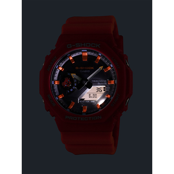 ■ GA-B2100DF-4A【ガラパゴスベニイワガニ モデル】全身が赤く彩られた「ガラパゴスベニイワガニ」をイメージし、時計全体を鮮やかなレッド系カラーで統一。存在感抜群のデザインです。