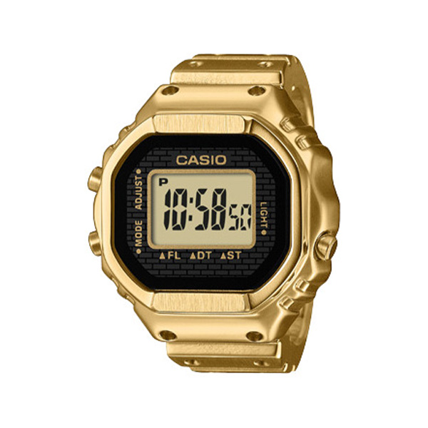 カシオリングウオッチは指輪型のデジタル時計で、カシオの腕時計の機能と複雑な造形を、指輪サイズで細部まで再現しています。ステンレススチール素材のリングを高度な金属射出成形技術で細かなディテールまで形づくり、ゴールドカラーのイオンプレーティングを施しました。