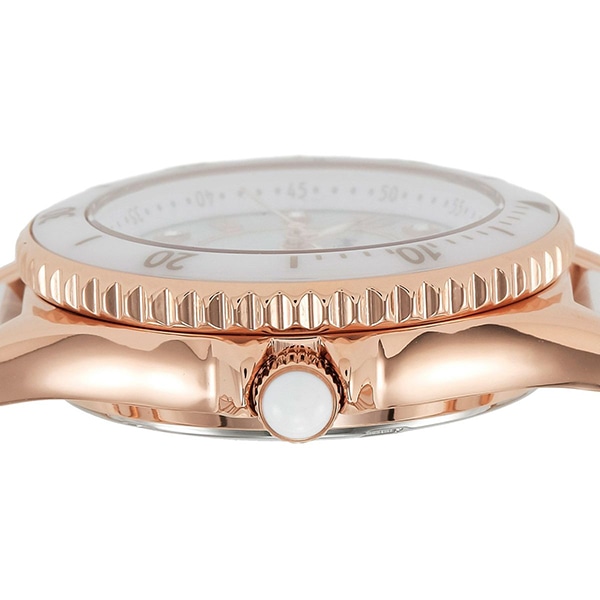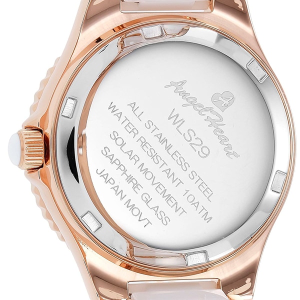 スポーティーなのにラグジュアリー。セラミック素材に加え、フェイスの厚みやねじ込み式風リューズがスポーティー感を増幅。文字盤の七色に輝く天然パールやスワロフスキー・クリスタルでラグジュアリー感をプラスします。ファインセラミックを使用しているので長期間使用してもキズがつきにくく、軽量のため着用しやすいのが特徴。