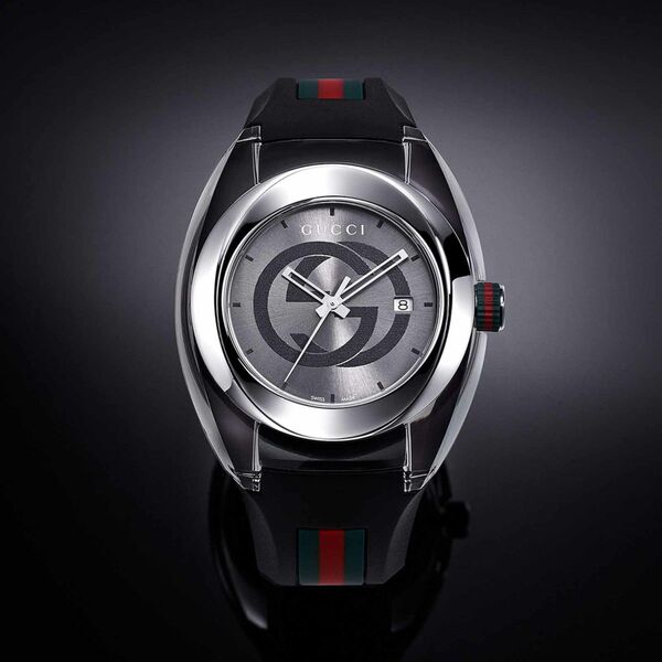 【ご注文後お取り寄せ商品】ステンレスケースを包むようにクリアケースをあわせた、スポーティーな「SYNC(シンク)」シリーズ。 ポップなカラーに「インターロッキング」「シェリーライン」などグッチらしさが随所に散りばめられたアイコンピースです。 メンズ、レディースともにラバーベルトの軽やかな仕上がりとなっているので、日常の腕元へのアクセントとしても魅力的な逸品です。ピンバックルを採用した軽やかな「ラバーストラップ」にステンレス製のケースをポリアミド樹脂で覆った「グレークリアケース」のサイドからブランドロゴがみえることや、文字盤にあしらわれたインターロッキングが映えるデザインは日々のお手元に華やかさを添えます。 また文字盤の3時位置には日付表示機能を備えているので利便性もよく、ブラックカラーに映えるシェリーラインも差し色となっていて1本でグッチのアイコンを堪能できるタイムピースです。