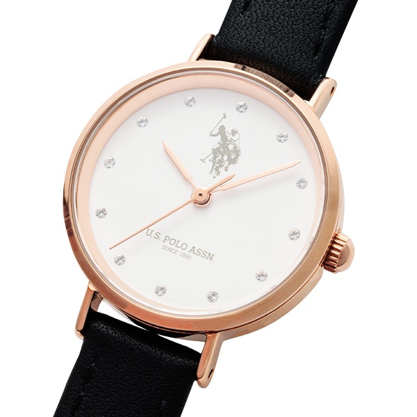 より女性らしい小ぶりな28㎜サイズ。インデックスには石をセッティングし、女性らしい腕元を演出します。ミニマムなデザインながらもPOLOロゴがしっかりとデザインされています。