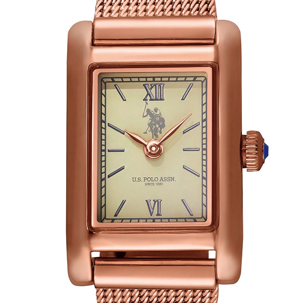華奢なストレートラインのレクタングルケースに、オニキスのリュウズがモダンなアクセントを添える。12時6時位置にはスマートなローマンインデックスが際立つダイヤル、クラシックモダンを表現したデザインをまとめます。 文字盤にはPOLOロゴをあしらい、ブランドらしさも忘れず上品なデザインの中でさりげないアクセントに。 カジュアルにはもちろん、オフィスやフォーマルなスタイルにも活躍してくれるデザインです