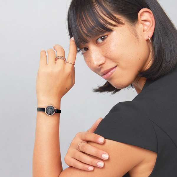 デンマークデザインらしいミニマルでクリーンな印象をもつクラシックコレクション。BERINGの中でも特に小さな22mmのケースに、幅6mmの細く繊細なストラップを組み合わせました。見る角度で表情を変えるパールのダイヤルを採用した3色は日本国内だけの限定カラーです。フラットで反射の少ないサファイアガラスを採用しながら1万円台で手に入る価格も魅力的です。