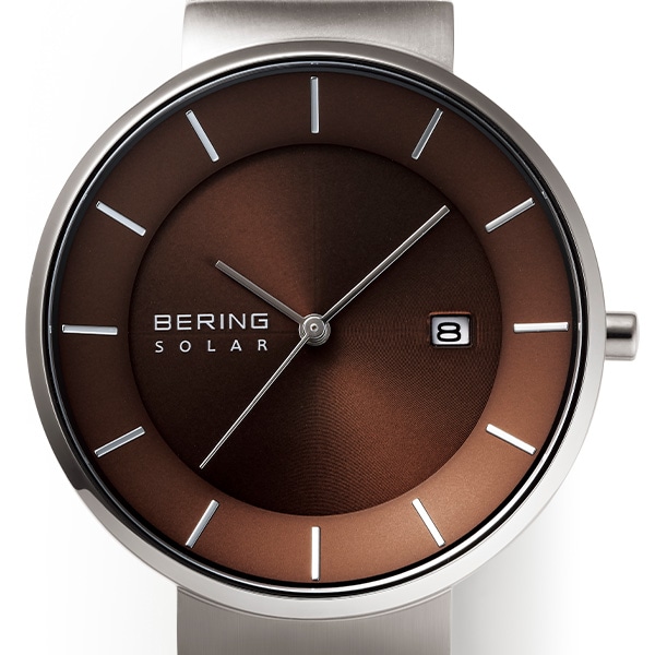 エレガンス、ミニマリズム、エコロジーが完璧にミックスされ、どんなシーンにもマッチします。軽量で薄型のため、腕に優しくフィットし、しなやかなミラネーゼストラップが着け心地を更に快適にしてくれます。ベーリングでも特に人気の高いブラウンカラーは肌なじみがよく、ほどよい主張でさまざまなコーディネートにもマッチします。おとなっぽく、落ち着いた雰囲気で腕時計を楽しみたい方におすすめのカラーです。39mmサイズのケースは大きすぎず、ベルトはケースに対しやや細めのデザインなので、腕の細い男性や女性の方にも気兼ねなく着用いただけます。
