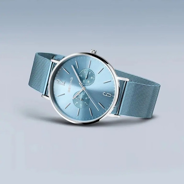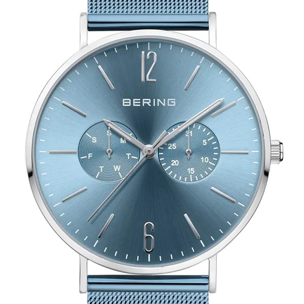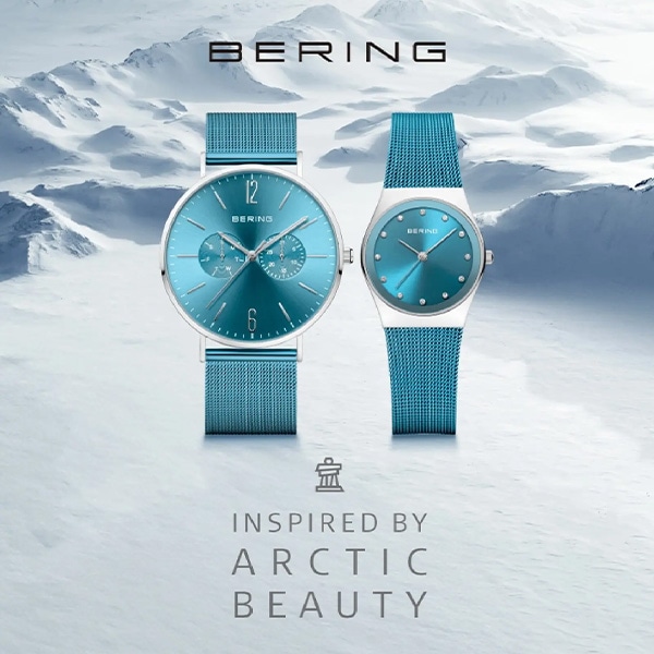40mmサイズは、日本限定で付替用のシルバーメッシュストラップが付属します。北極の大自然からインスパイアされたBERINGならではのカラーをお楽しみください。