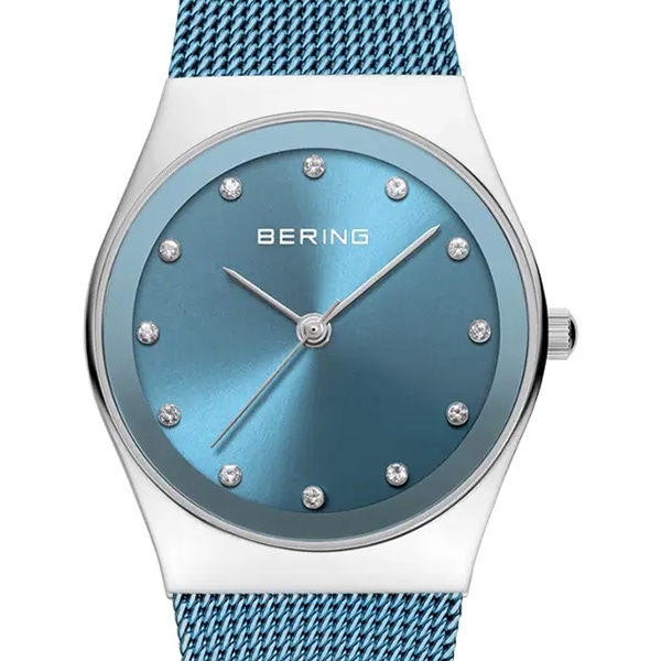 光沢感のあるシルバーのポリッシュケースとサンレイ加工を施したアークティックブルーのダイヤルが好相性です。腕に柔らかく馴染むメッシュストラップも他にはないオリジナリティのあるカラーリングで目を惹きます。