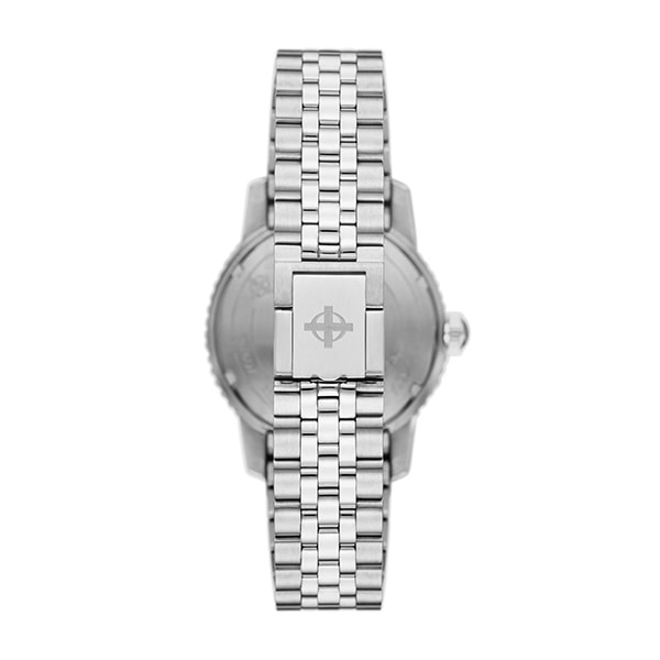 深海の鮮やかな色合いをモチーフにしたSUPER SEA WOLF 53 COMPRESSION。ベゼルとマットダイヤルの大胆なブルートーンが、広い海の美しさを表現しています。5リンクブレスレットをあしらったクラシックな艶消しステンレススチールケースには、Zodiacを象徴するスイス製STP 3-13オートマティックムーブメントを搭載しています。