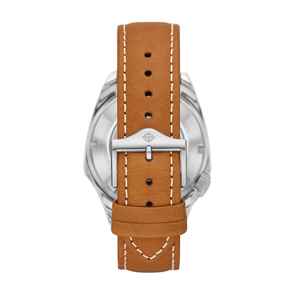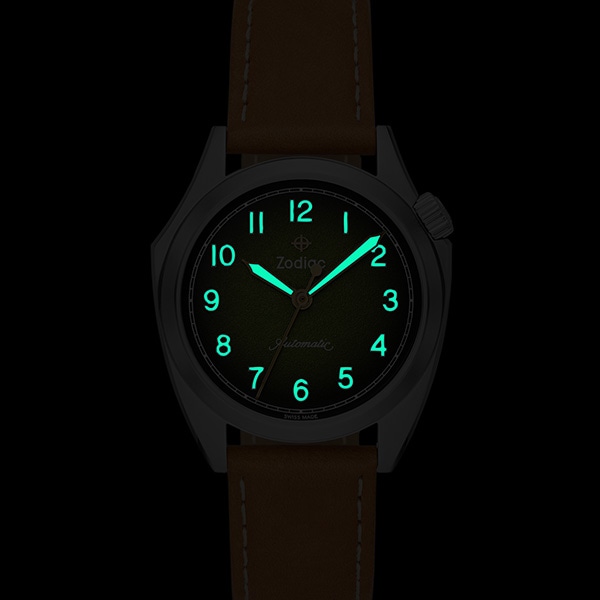 グリーンの文字盤、スイス製STP 1-11自動巻き3針ムーブメント、ブラウンのレザーストラップを備えた40mmのオリンポス・ウォッチ。