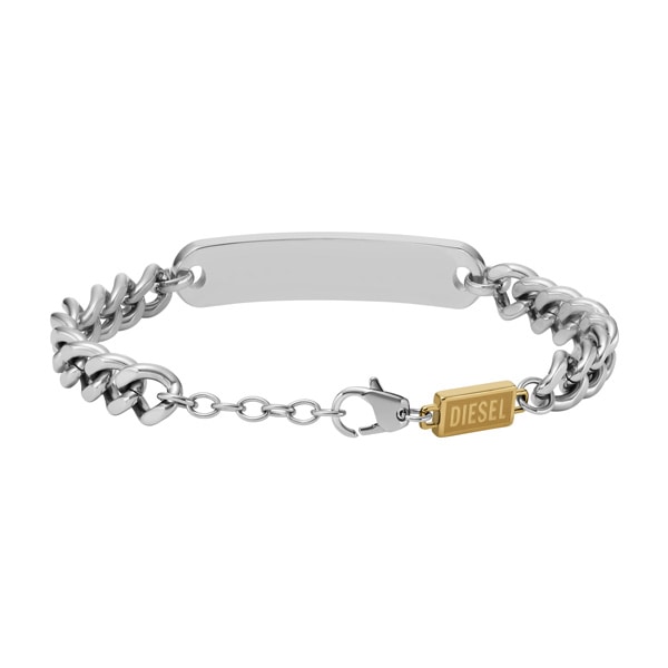 Dieselのツートーンのステンレススチール製IDチェーンブレスレット。ロブスタークラスプ付き。