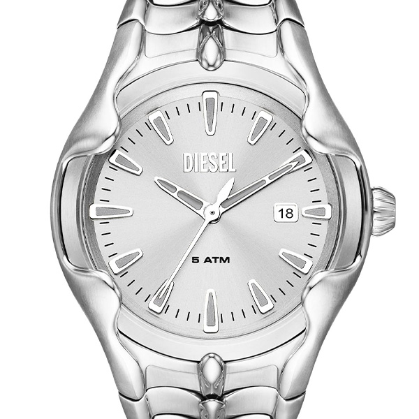 44mm径のケースに三針デイト表示付きムーブメントを搭載したDieselのVERTウォッチ。