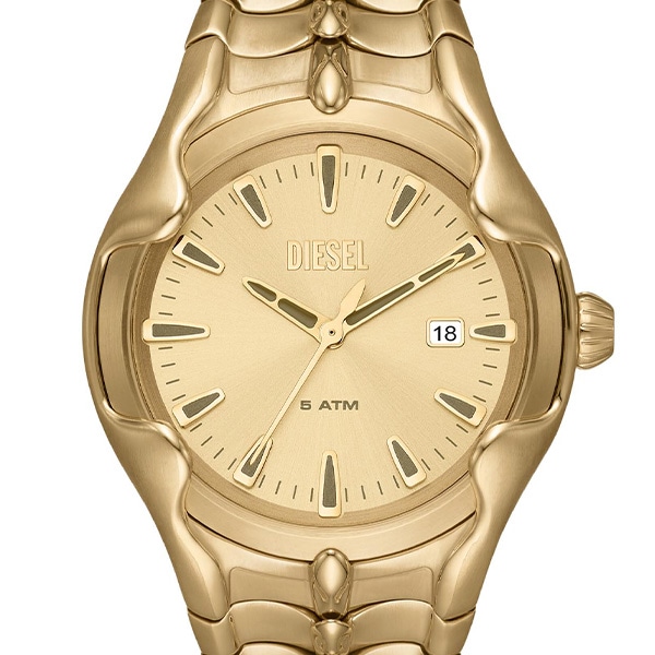 44mm径のケースに三針デイト表示付きムーブメントを搭載したDieselのVERTウォッチ。