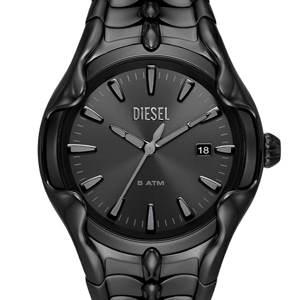 44mm径のケースに三針デイト表示付きムーブメントを搭載したDieselのVERTウォッチ。