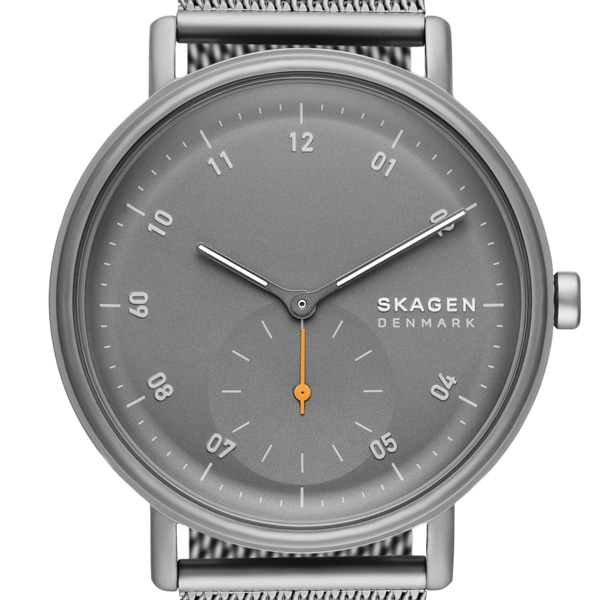 44mm径ケースに二針サブセコンド カラーポップムーブメントを搭載したKUPPEL。チャコールのサンドブラストダイヤルに、チャコールのステンレススチールメッシュストラップを組み合わせました。ウォッチストラップは付け替え可能です。