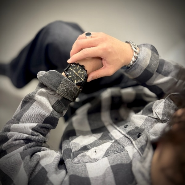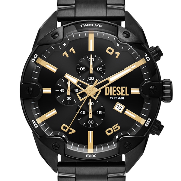 49mm径のケースにクロノグラフムーブメントを搭載したDieselのSPIKEDウォッチ。