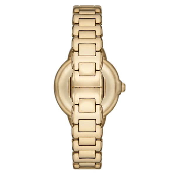 32mm径のケースに三針ムーブメントを搭載したEmporio Armaniのウォッチ。エッグシェルのサンレイダイヤルに、ゴールドトーンのステンレススチールブレスレットを組み合わせました。