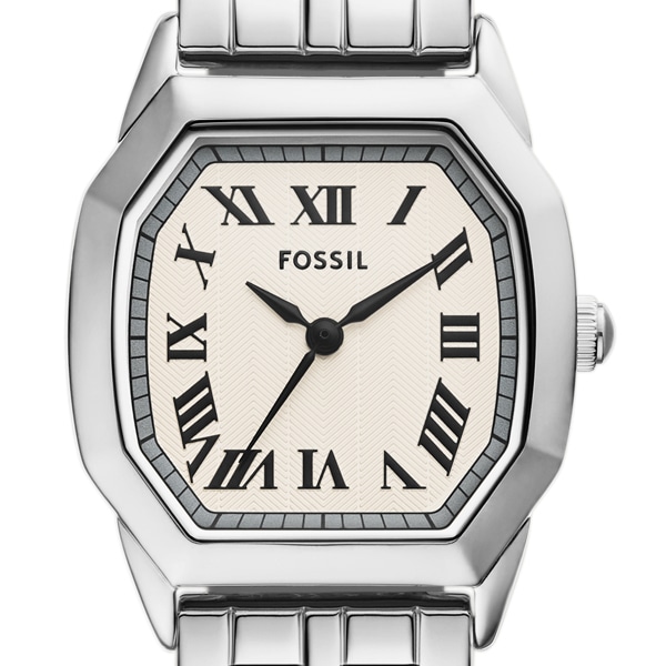クラシックなアーカイブスタイルから着想を得て誕生したHARLOW。古くから愛されてきた洗練された魅力を再現したモデルです。繊細な艶出しステンレススチール製5連リンクブレスレットを備えたこのウォッチは、八角形のケース、質感のあるクリームカラーのダイヤル、三針ムーブメントが特徴です。