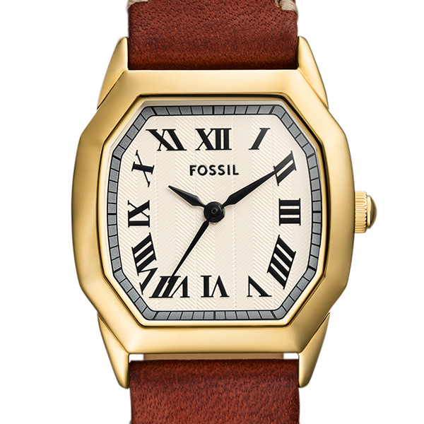 クラシックなアーカイブスタイルから着想を得て誕生したHARLOW。古くから愛されてきた洗練された魅力を再現したモデルです。このタイムレスなウォッチは、ゴールドトーンの艶出しステンレススチールを使用した八角形のケース、質感のあるクリームカラーのダイヤル、三針ムーブメント、ブラウンのレザーストラップが特徴です。
