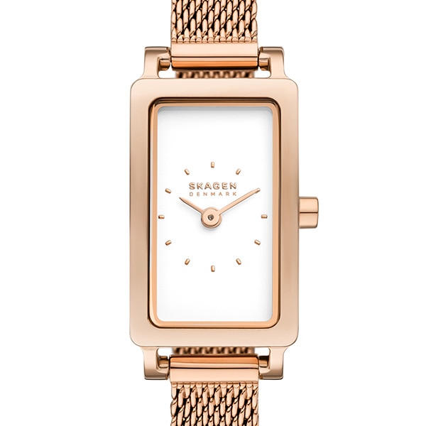 30mm径のケースに二針ムーブメントを搭載したHAGEN MICRO。光沢のあるホワイトのダイヤルに、ローズゴールドトーンのステンレススチールブレスレットを組み合わせました。