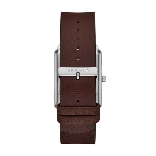 36mm径のケースに三針ムーブメントを搭載したHAGEN。サンドブラスト仕上げのホワイトのダイヤルに、ブラウンのレザーストラップを組み合わせました。