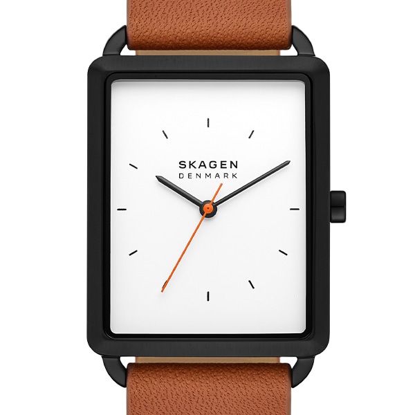 36mm径のケースに三針ムーブメントを搭載したHAGEN。サンドブラスト仕上げのブルーのダイヤルに、ブラウンのレザーストラップを組み合わせました。