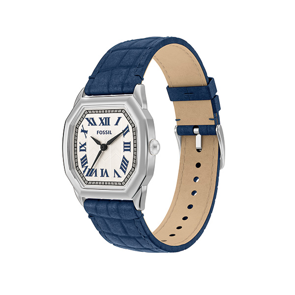 このシルバートーンの小さな八角形ケースに、質感のあるクリーム色のダイヤルとネイビーのクロコエンボス加工レザーストラップが美しくマッチしています。ユニークなフォルムのケースは、モダンな幾何学的シルエットを生み出し、レザーのディープブルーの柔らかなコントラストを引き立てています。ステンレススチールから考え抜かれて作られたモデルは、ポリッシュ仕上げが上品さを引き立て、テクスチャードダイヤルが奥行きとディテールを際立たせます。素材とデザイン要素の組み合わせにより、このモデルは新鮮で親しみやすい美的感覚を備えた傑出したアクセサリーとなっています。