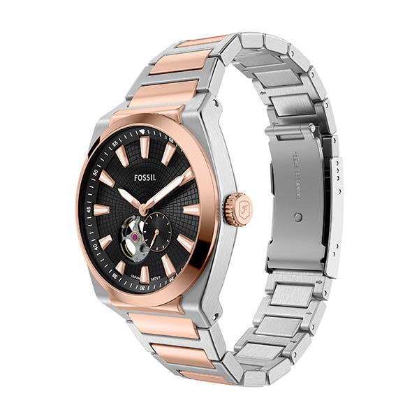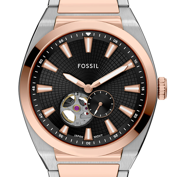 エフォートレスなスタイルが魅力のEVERETTオートマティック。ローズゴールドトーンとステンレススチールのツートーンがスポーティなこのウォッチは、カジュアルなクールさと上品で洗練されたバランスを保っています。42mm径のステンレススチール製ラウンドケースにブラウンのオープンハートサンレイダイヤルを組み合わせ、モダンな印象に仕上げました。ダイヤルとディスプレイケースバックから見える自動巻きムーブメントを搭載。バッテリーなしで時を刻むこのウォッチは、そのデザインを通して複雑なメカニズムを際立たせています。アクティブなライフスタイルに対応するアイコニックなアクセサリーです。