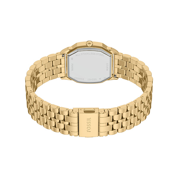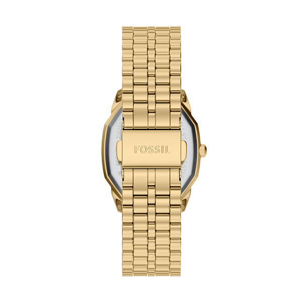 ゴールドトーンの八角形ケースが幾何学的な雰囲気を醸し出し、グリーンのテクスチャードダイヤルが立体感と奥行きを添えます。お揃いのゴールドトーンのステンレススチール製ブレスレットがデザインにまとまりを与え、ダブルプレスのバックルでしっかりとフィットします。考え抜かれたプロポーションとすっきりとしたラインが、特徴的なフォルムと控えめなディテールのバランスを生み出します。
