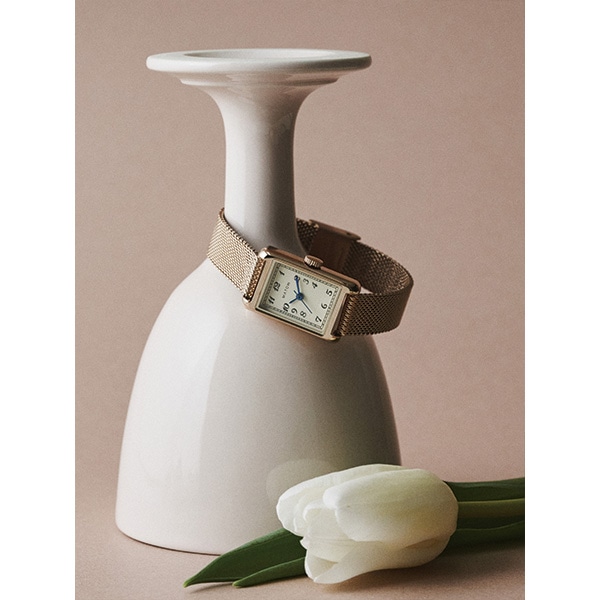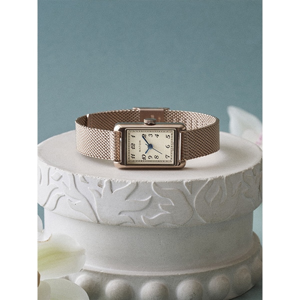 朧月アラビックは、“Reモダン”をテーマに、クラシカルなアラビア数字の文字盤と洗練されたメッシュバンドを融合させたタイムピースです。繊細な編み込みが特徴のメッシュバンドは、軽やかでしなやかなフィット感を実現し、手元にエレガントな輝きをプラス。伝統的なデザインにモダンな素材を掛け合わせることで、ノスタルジックでありながら現代的な表情を持つ一本に仕上げました。青い針がさりげないアクセントとなり、日常に洗練された美しさを添えます