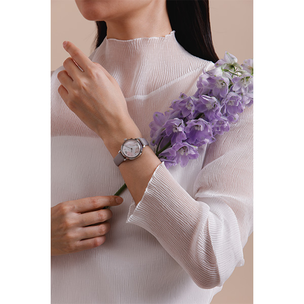 春のはじまり、奈良・吉野の山にふんわりと漂う桜の霞。 そのやさしい空気感を、天然の花びらとともに文字盤に閉じ込めました。 静けさとぬくもりをまとう、やわらかな時間をあなたの手元に。
