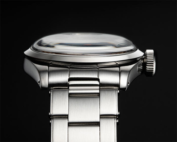 アンティークウォッチに見られるドーム状にふっくらしたプラスチック風防を採用。そのドーム状も1960年代当時のような雰囲気になるよう、 ベゼルからの高さを4mmとしてその形にこだわっている。