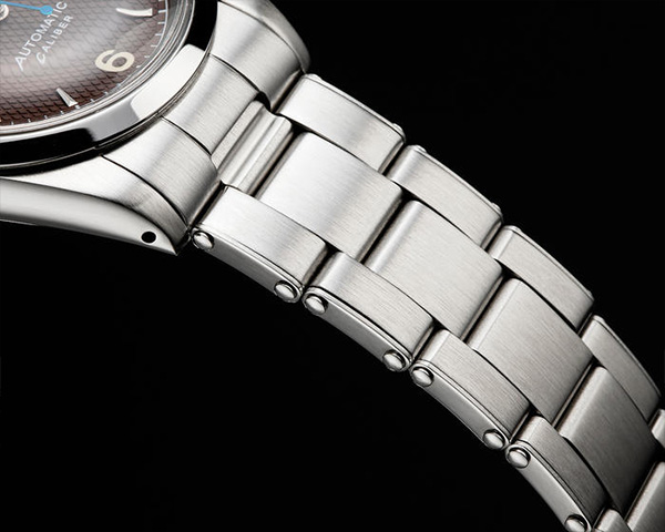 1950年代にロレックスが採用していたリベットブレスを忠実に復刻。若干伸び縮みするエクステンション仕様、軽い着け心地となっています。