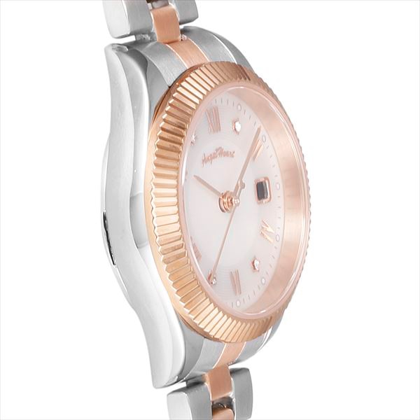 ダイヤモンドカットされたベゼルが腕元を華やかに彩ります。星型のインデックスや光の当たり具合で7色に輝く天然パールの文字盤もポイントです。マット加工されたツートンカラーのブレスが高級感を増幅します。