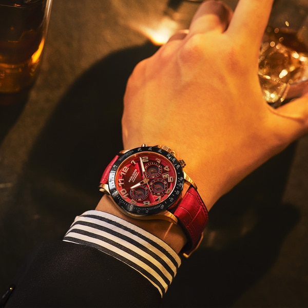 また、フル充電時約4ヵ月間駆動するソーラークォーツムーヴメントを搭載しており、電池交換の手間を軽減します。パワーリザーブインジケーターを搭載しているので、充電残量も一目で確認できます。 さらに、レザーの側面と背面に耐久性の良いシリコンを圧着させたハイブリットベルトを起用。普段使いからアウトドアまで、多様なシーンに活躍するアクティブウォッチです。