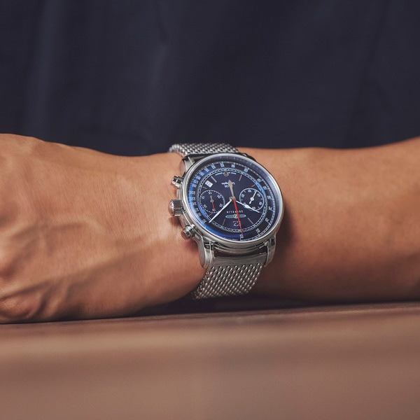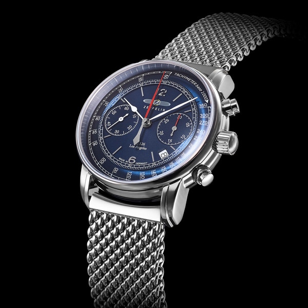 スイス製機械式クロノグラフ搭載。国内ZEPPELINの最高スペックの新作が登場。1924年にドイツ、フリードリヒスハーフェンのツェッペリン工場で誕生し、ドイツ政府からアメリカに譲渡された飛行船「LZ126ロサンゼルス号」をモチーフにデザインしたハイスペック・クロノグラフです。