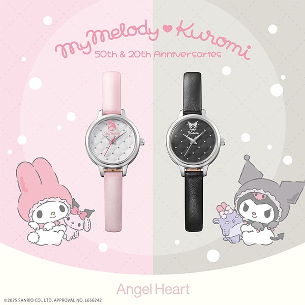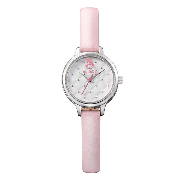 ハローキティに続きサンリオの人気キャラクタークロミ(20周年)とマイメロディ(50周年)との周年コラボレーションが誕生。マイメロモデルはキルティング加工を施したキュートな文字盤がポイント。さらにガラスにはマイメロのお顔がプリントされています。マイメロをイメージしたベビーピンクのベルトを採用。ケースバックにはマイメロの刻印が入ります。