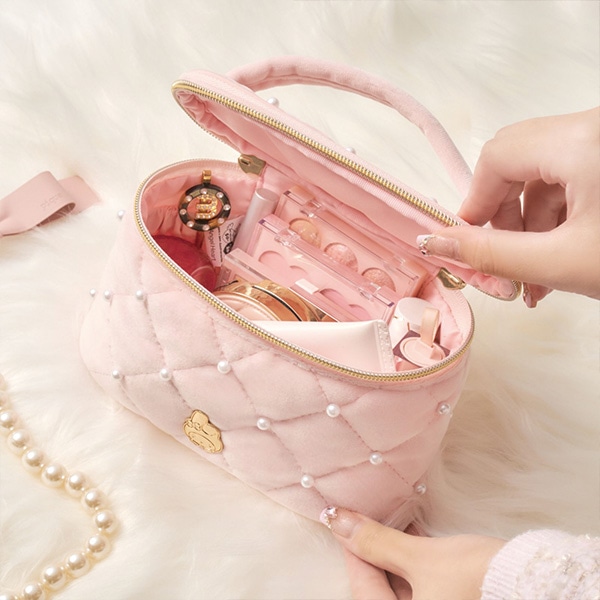 クロミの時計にはクロミの、マイメロディの時計にはマイメロディのふわふわバニティポーチがそれぞれ付属します。(ボア素材)