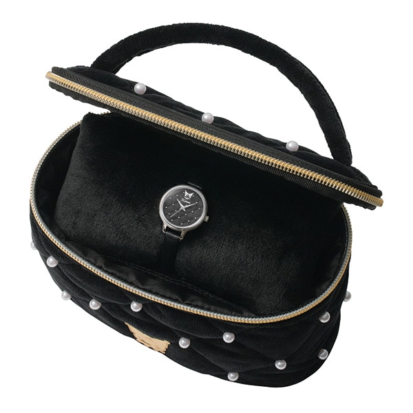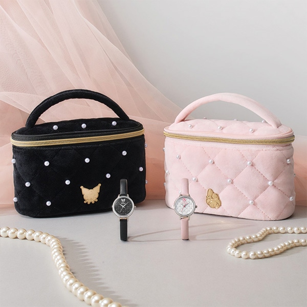 クロミの時計にはクロミの、マイメロディの時計にはマイメロディのふわふわバニティポーチがそれぞれ付属します。(ボア素材)