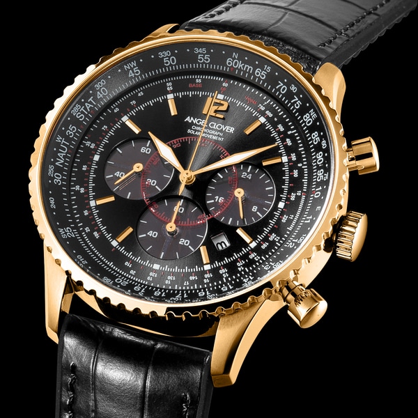 クロノグラフ60分計、1/5秒計、24時間表示を搭載し、さらに計器としてさまざまな意味を持つ目盛りが記された、ベゼル&ダイヤルは繊細かつ大胆。経過時刻の積算や速度の算出など、飛行に必要なあらゆる計算が可能な高い機能性を備えた、パイロットウォッチならではの精悍なルックスに心踊らされます。 力強いインパクトのあるクラシカルなデザインに加え、モデル名にもある太陽光のフル蓄電で6か月間駆動といった、ストレスを感じることなく使うことができる実用的なタイムピースです。