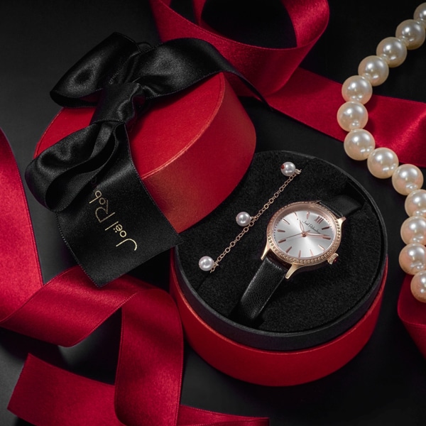本商品にはホリデーシーズンのギフトにおすすめな、大きいリボンが目を惹くオリジナルギフトボックスと、時計と合わせて楽しめるパールビーズが6粒連なるオリジナルブレスレットが付属します。留め具には『Joel Robuchon』のロゴが刻印されています。