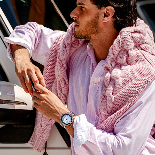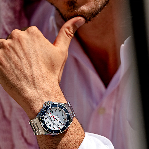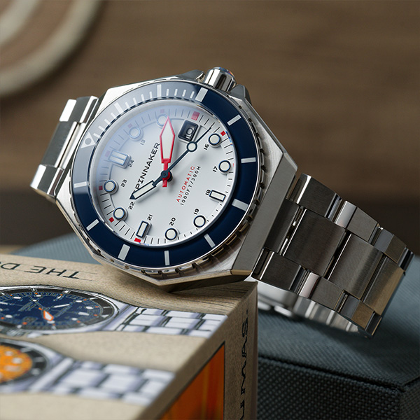 1970年代の腕時計からインスピレーションを受けて誕生した機械式ダイバーズウォッチ「DUMAS(デュマ)」は、重厚感のある八角形ケースが特徴的な、ヴィンテージ感漂うデザインに仕上がっています。30気圧防水を備えた本格仕様で、陸でも海でもその存在感を放ちます。モデル名「DUMAS」は、ダイビングの歴史に名を刻むフレデリック・デュマに由来しています。彼は、世界初のダイビングレギュレーターの共同開発者であり、海洋研究協会「Sea Research Society」の創設メンバーとしても知られています。ディテールにもこだわり、風防には高い強度と透明性を誇る「サファイアクリスタル」を採用。インデックスと針には、暗所での視認性を確保するスイス製の蓄光塗料「スーパールミノバ」を施しています。さらに、ムーブメントには信頼性の高い日本製を搭載し、見た目の美しさだけでなく、機能性にも優れた一本となっています。