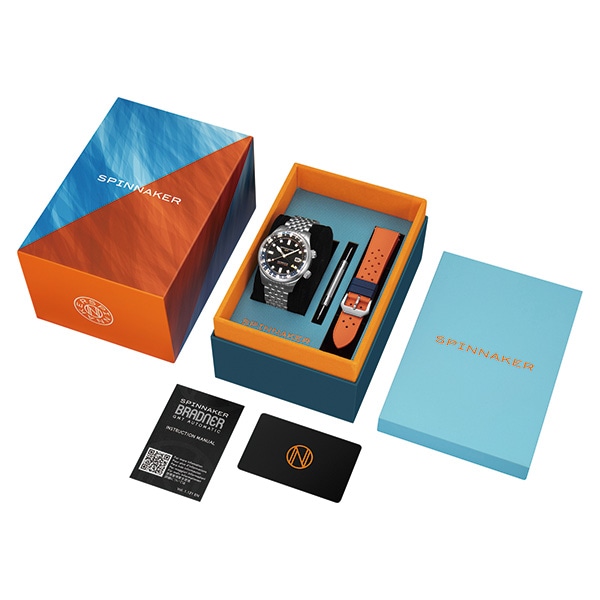 1950年代に登場した、歴史深い機構であるコンプレッサーケース。2時位置にあるリューズを回すと、ケース内部のインナーベゼルが回転する仕組みです。高い気密性を維持したままインジケーターとしての機能を付与でき、多くのダイバーズウォッチに利用されてきました。ブラッドナーコレクションは、今日ではヴィンテージなギミックとして知られるこの機構を駆使し、モダンで上品なタイムピースへと昇華させています。