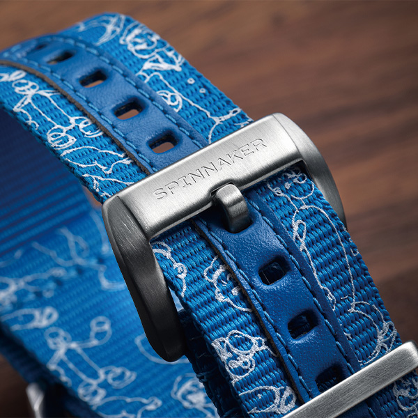 服のカラーリングに合わせて、ダイヤルや逆回転防止ベゼルはブラックとブルーの2トーンに彩られ、日付表示やリューズトップにはセーラー服の襟色と同じレッドを採用しています。