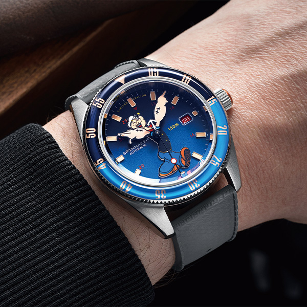 世界で愛されてきた人気アニメーションの主人公ポパイや、永遠のライバルであるブルートの姿を文字盤に表現。