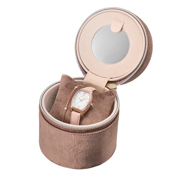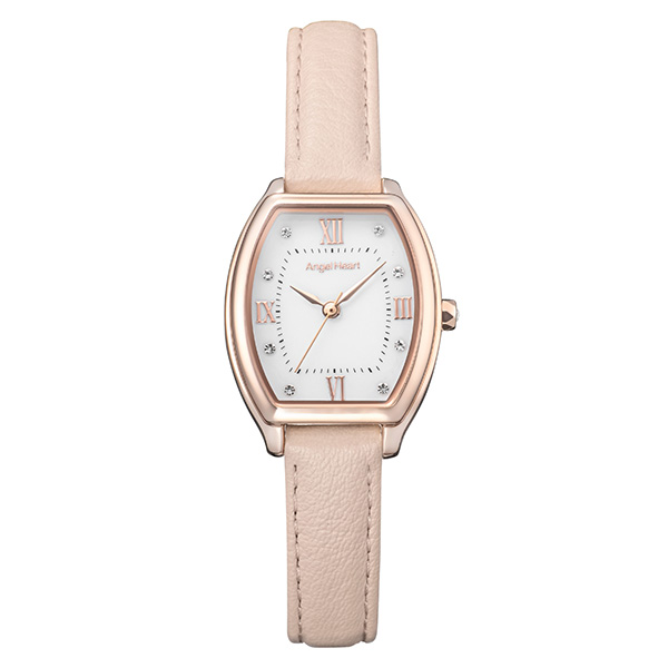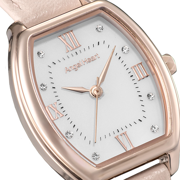シンプルなホワイトにローマ数字をあしらったタイムレスなデザインに、8石のクリスタルを施し、エンジェルハートらしい可愛さをプラス。 エンジェルハート王道カラーピンクベージュカラーのカーフレザーベルトは肌なじみが良く、どのようなスタイルにもマッチします。 60メモリ付きで視認性に優れており、使いやすさも抜群。 5石のクリスタルが輝く日本製のブレスレット付きのギフトセットです。
