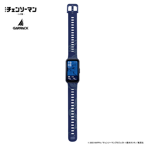 劇場版『チェンソーマン レゼ篇』のスマートウォッチが登場! キャラクターをイメージしたベルトとオリジナル文字盤を備えた特別仕様のスマートウォッチです。 【早川アキモデル】 早川アキをイメージした特別デザインのスマートウォッチ。 ベルトにはタバコの煙をイメージしたデザインを採用しました。 オリジナル文字盤は、早川アキをモチーフにしたユニークなギミックを搭載しています。 心拍数が一定以上になると早川アキのカラーが変化するギミックを搭載。 さらに、通知が届くとポチタが登場。 バッテリー残量に応じてタバコの長さが変化するなど、日常の中で「チェンソーマン」の世界観を楽しめます。 ヘッドの重さは14gと軽量設計、さらにスリムな設計で男性でも女性でも日常的に使いやすいデザインです。 バンドには柔らかい素材を採用し、長時間の装着でも快適。 睡眠時や運動時も心地よくご使用いただけます。 急速充電可能で、最大14日間使用可能なロングバッテリーを搭載。 ストレス管理や運動管理など、日常をサポートする多彩な機能も充実。 手に取りやすい価格ながら、実用性とデザイン性を兼ね備えたスマートウォッチです。 他にもデンジ、レゼ、マキマのモデルもラインナップ。