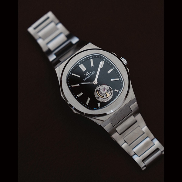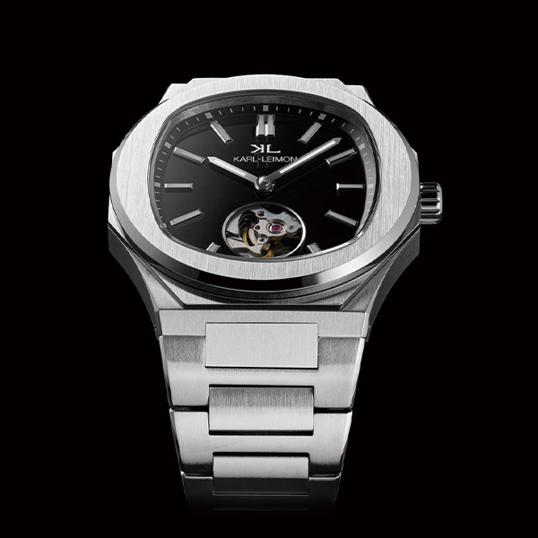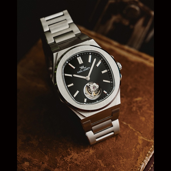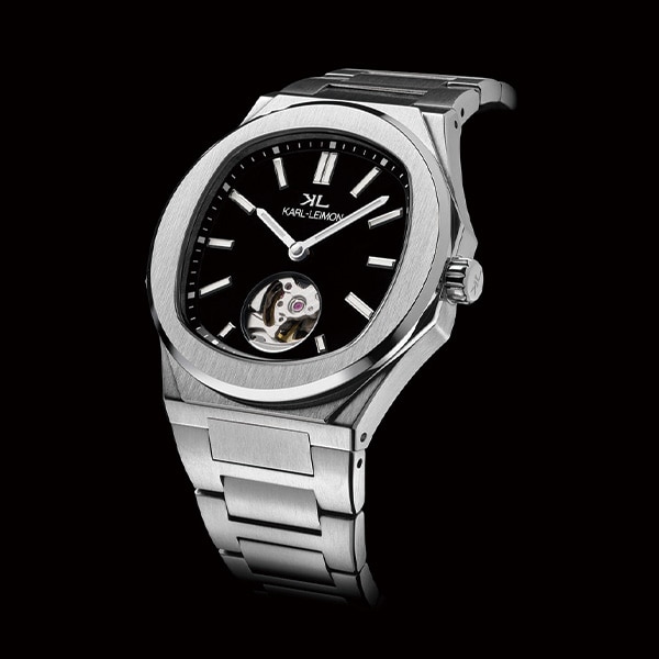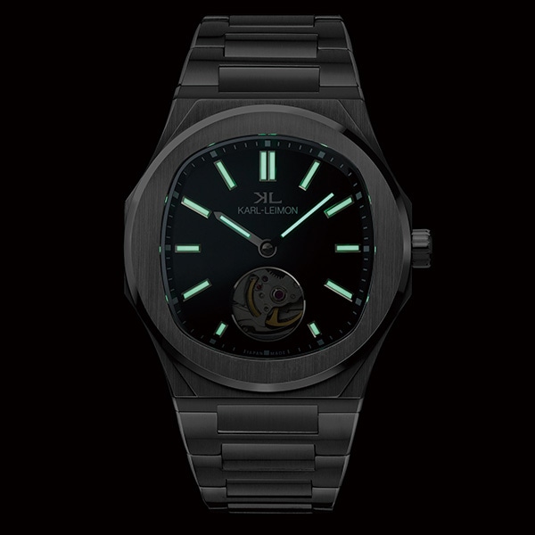 機械が透けて見えるオープンハートの高級自動巻きムーブメントを搭載したメードインジャパンのハイエンドモデル。傷の付きにくいサファイアガラスを使用しています。