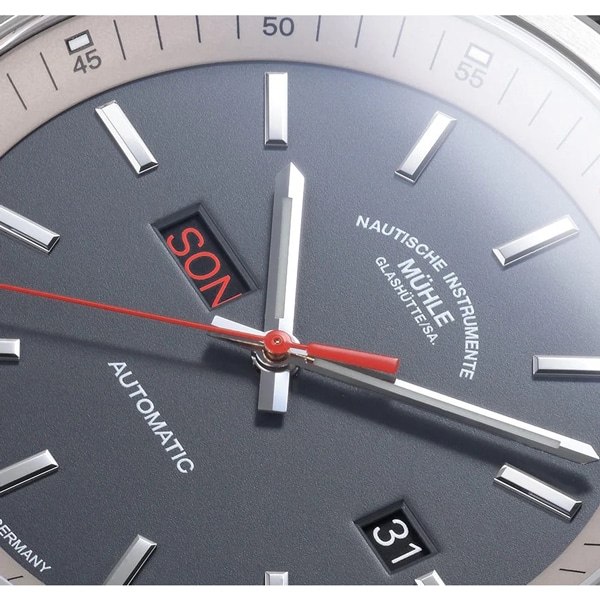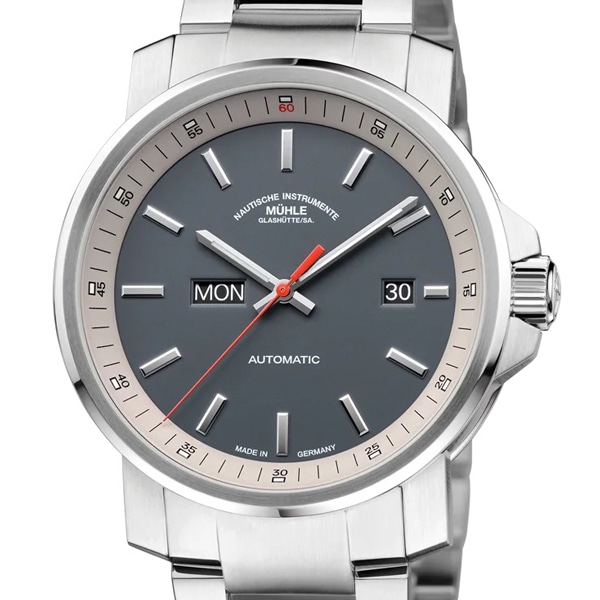 “29er”というシリーズ名は、ドイツのセーリング協会の若年層向けのセーリング協議会で、多く活躍していたヨットの種類が由来となっています。スポーティーで、ダイナミックなデザインは、29erのヨットのデザインにインスパイアされて作られています。デイ・デイトの日付と曜日表示の配置は”バランス”を重要視しており、これは、航海・セーリングにおいて、バランスが重要視されていることに大きな影響を受けています。ねじこみリューズ / 特許取得済みWoodpecker Neck搭載 /クロノグラフ・週・日付/ ストップセコンド機能 /日付のクイック修正/時針・分針・アワーマーカールミノバ加工/パワーリザーブ41時間