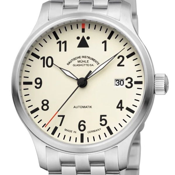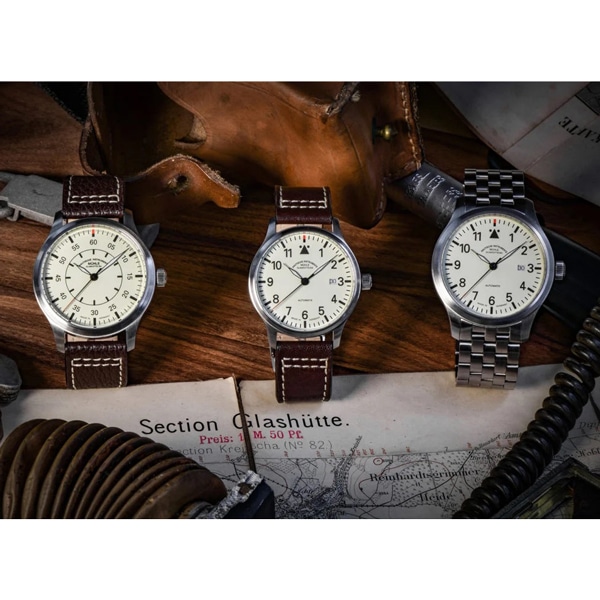 Terrasportは、グラスヒュッテの伝統的なパイロットウォッチがモデルとなっており、12時位置には、数字の12 の代わりに”アビエイター トライアングル”をデザインされていることが大きな特徴です。また、”読みやすさ”もこのモデルの特徴で、ブラックまたはクリームの文字盤とインデックスの対照的な色合いで、時間が一目でわかり、12時位置にある赤い印のデザインが、より瞬時に12時の方向を示すことを可能にしています。